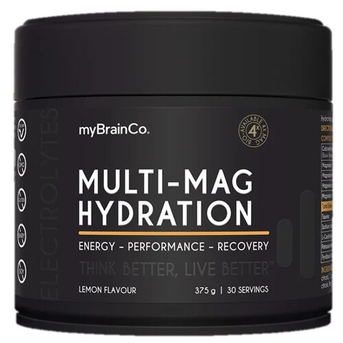 MyBrainCo Multi-Mag Hydration is an advanced magnesium and hydration formula designed to support muscle function, energy metabolism and recovery in one refreshing daily drink. Each serving delivers 365 mg of elemental magnesium from four highly bioavailable forms, including aspartate, citrate and orotate – to help maintain normal muscle function, electrolyte balance and energy production.