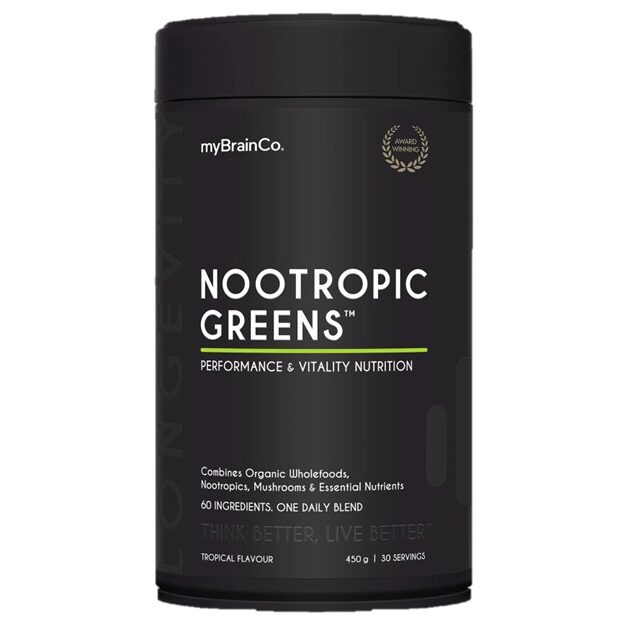Nootropic Greens is a powerful daily nutritional blend that supports energy levels, immune function, cognition, and longevity. Our unique formula combines certified organic, nutrient-dense whole foods with top-tier nootropics and industry-leading longevity ingredients conveniently packed into a single daily serving.