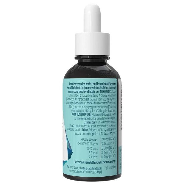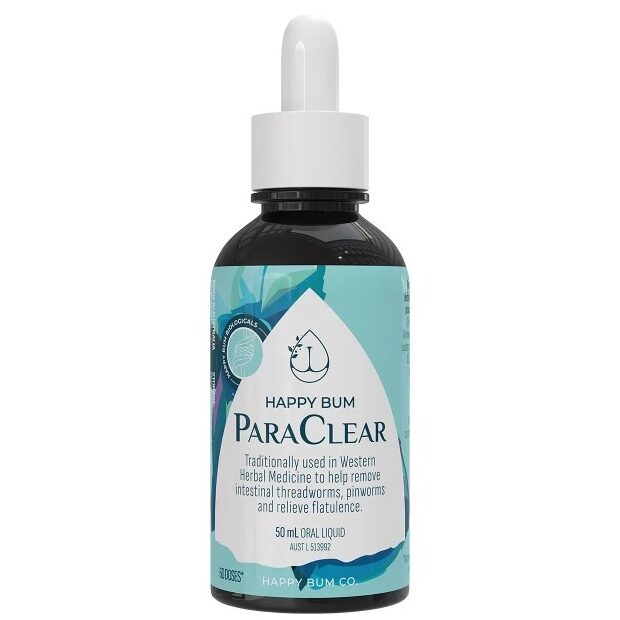 Happy Bum Co ParaClear is a liquid Herbal Medicine formulated to help remove intestinal threadworms/pinworms and relieve flatulence. ParaClear is an effective and natural solution for ridding internal pests and treating symptoms of threadworms and pinworms which are the most common type of parasitic infection. ParaClear offers gentle, effective support in an easy dosage liquid suitable for ages 2 and above.